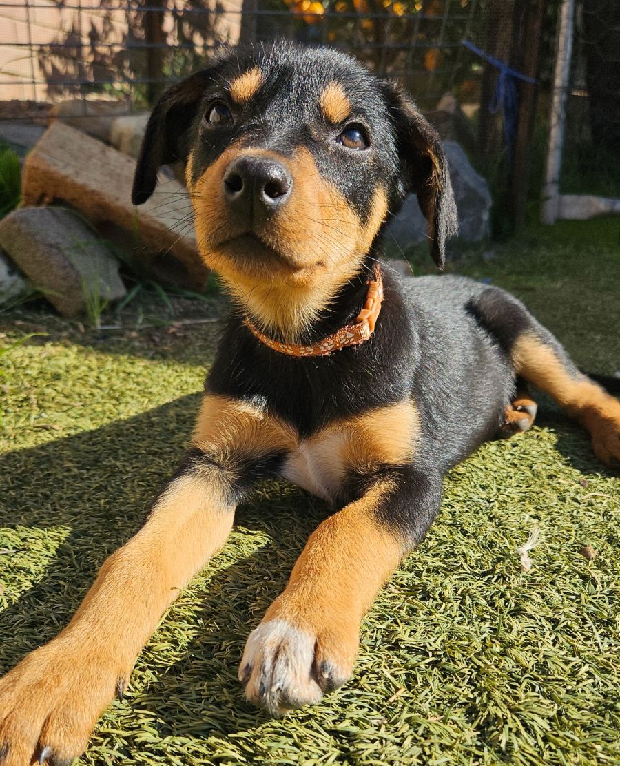 This sweet girl loves cuddles and to be near her human. She loves to play with her siblings, but will always choose snuggling with her humans first. She is clever and active, and would make an amazing partner for someone who is keen on training or fun activities like agility.