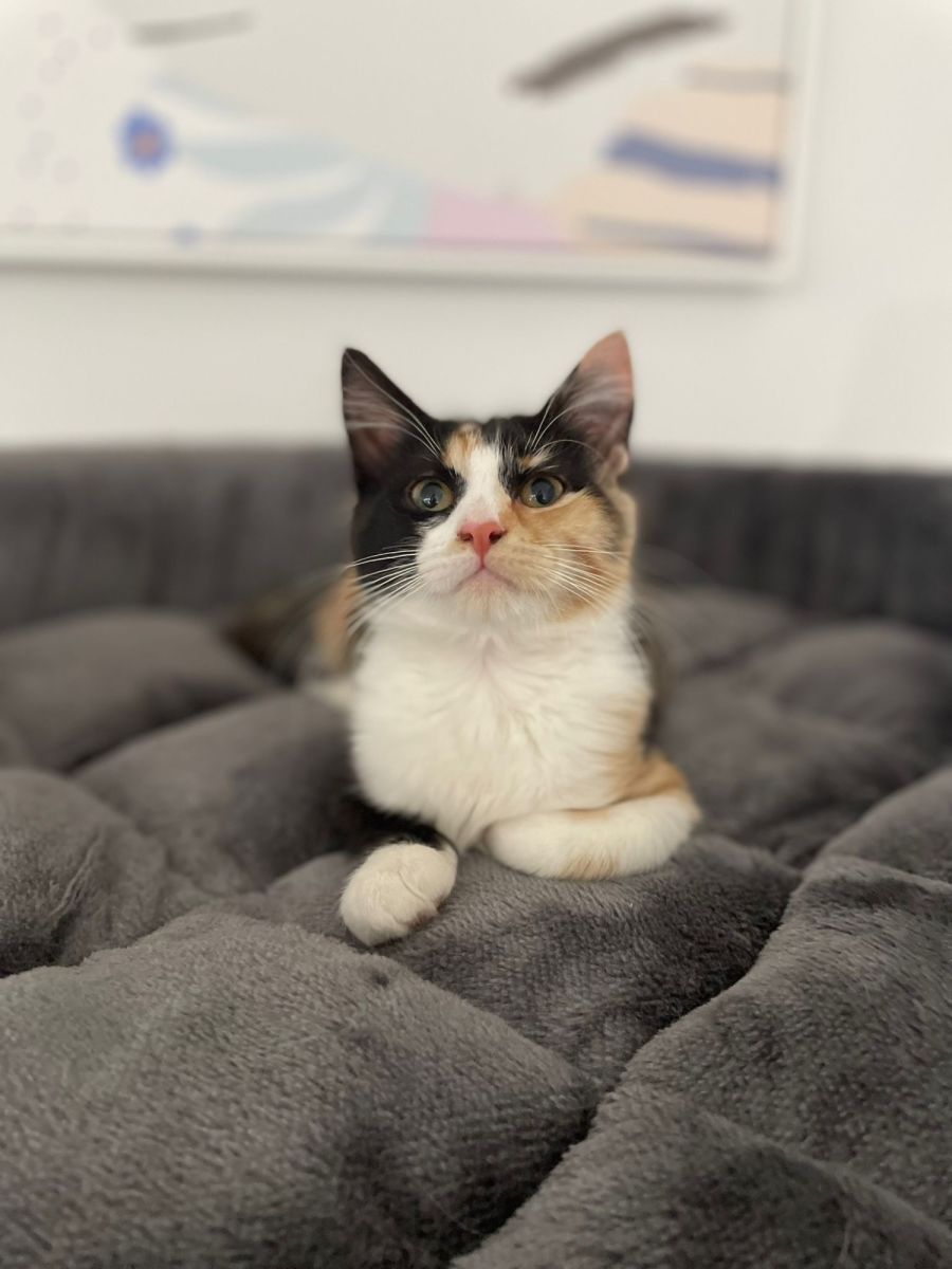 Introducing Ivy, our calico beauty with the charming personality to match her radiant colors! This lively cat is an extrovert with plenty of love to share; her playful and warm demeanor would light up any room she enters.