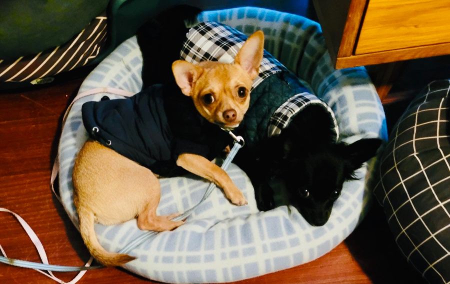 They both enjoy their mealtimes. Daisy is toilet trained and walks well on a lead, Pablo is still learning as he’s younger, but he just needs some encouragement.