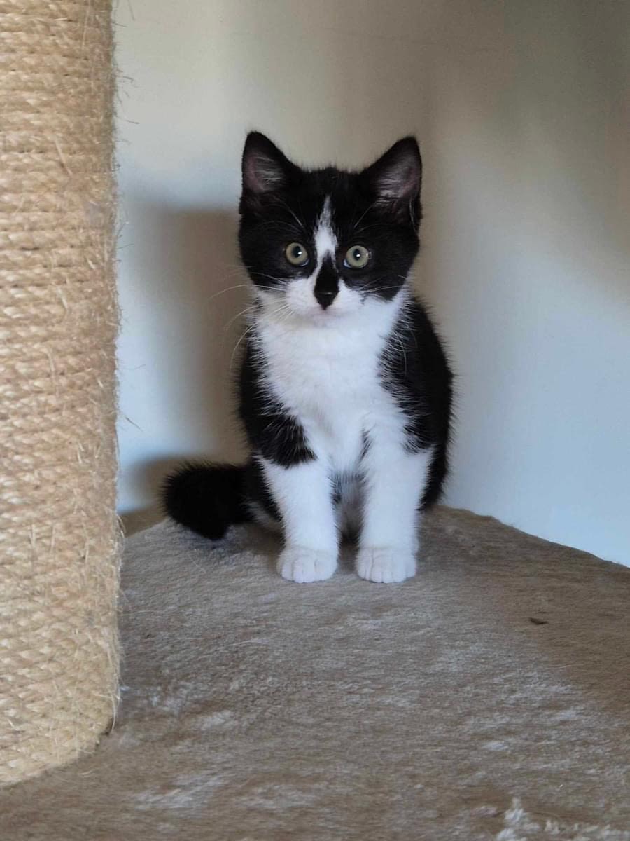 She is still getting used to humans, but she has come such a long way in the short time we have had her in our care. She is realising what it means to be a kitten, to have a safe place and a loving family to look after her. She has learned what the touch of a hand means, and now she purrs when touched and loves scratches. She is currently living with kittens and adult cats who she loves.