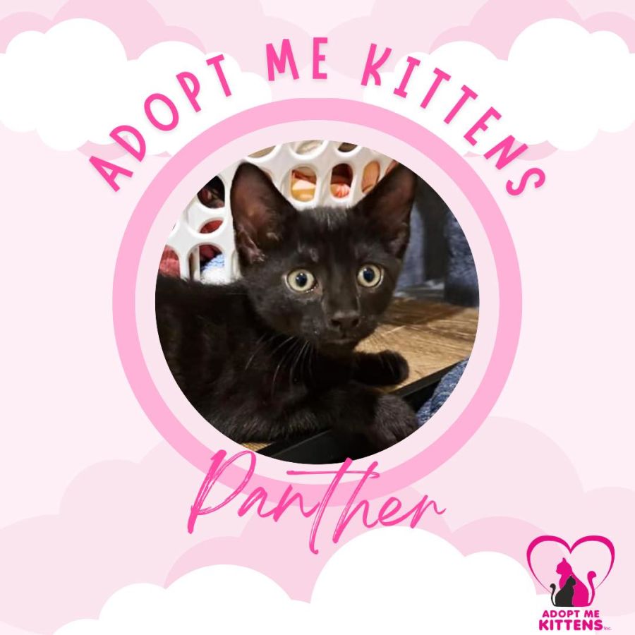 Panther is the spunky, lively one of the bunch. He loves chasing toys, racing up the cat tower, and wrestling his siblings. After only a short time in care, Panther has been socialising well with small children, other cats and kittens, and is getting to know XL dogs.