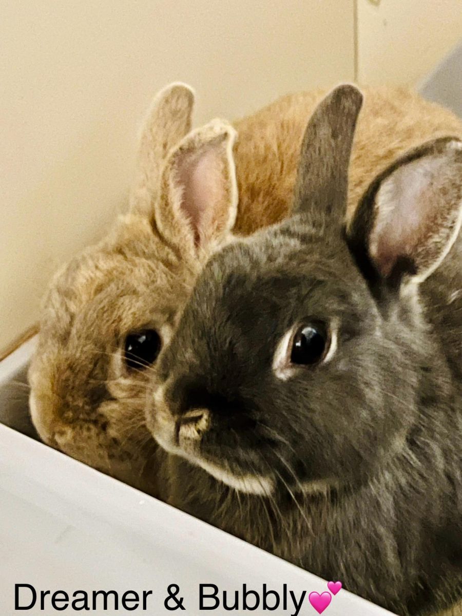 A Netherlands Dwarf bunny pair of a male and female. They are tiny, adorable, litter tray trained, desexed vaccinated and microchipped. They are totally handleable and love being cuddled. They are very healthy and love munching on The Rabbit Sanctuary’s own 6 Hay Mix. They have beautiful coloured fur with dream of the boy being a golden palomino colour and Bubbly a charcoal grey otter colour.