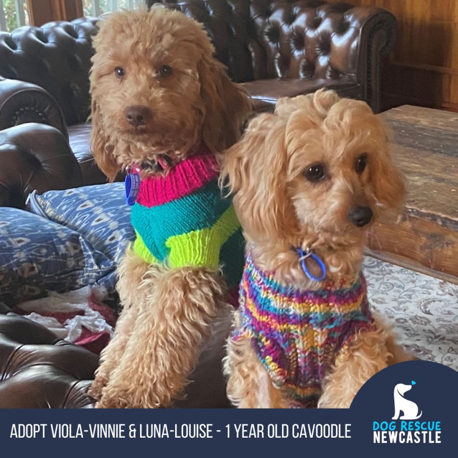 Luna is blonde girl (4 kgs) who is still a little timid but loves playing and fetch. Viola is ruby colour (6 kgs) and is a total foodie. She also loves fetch and getting into mischief.