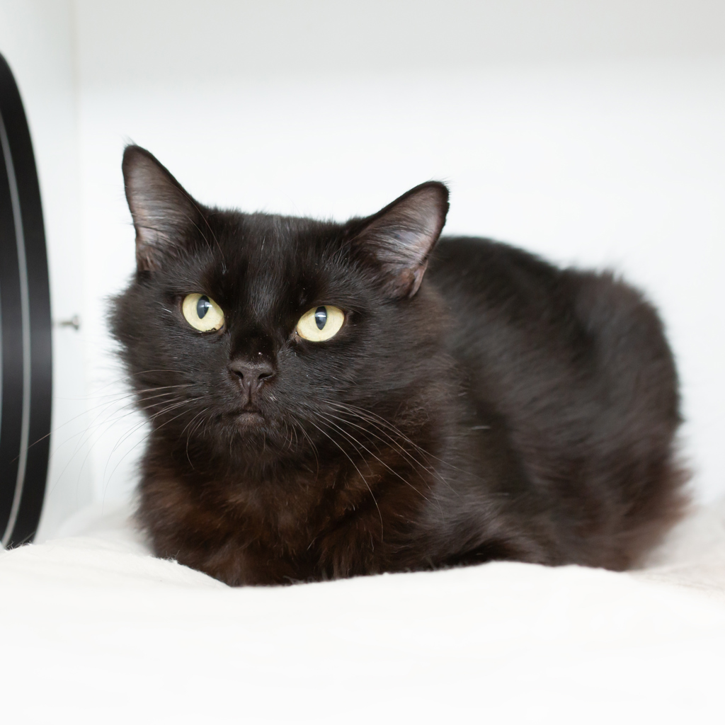 Meet Gaia, the enchanting one-year-old domestic medium-haired (DMH) beauty with sleek, black fur that gleams like the midnight sky. This lovely lady is on a quest to find her forever home, and she might just be the perfect new addition to your family!