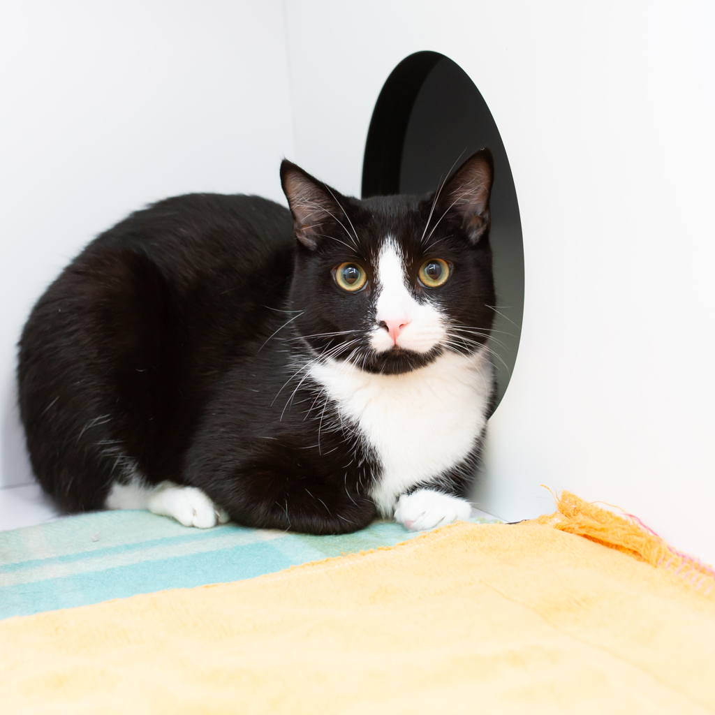 Hi Friends, my name is Scarpetta and I'm a handsome cuddly panther in a stunning tuxedo suit. I got my name because I LOVE food - my name means "soaking up all the sauce left on your plate with bread" in Italian, and you bet I lick my bowl clean every time! I'm shy but have a lot of love to give, so give me time to settle into a calm home and soon you'll be lapping up my love like fresh bread mopping up a delicious pasta sauce! If you're looking for a gentle cuddle buddy who enjoys a good play, I'm your boy.