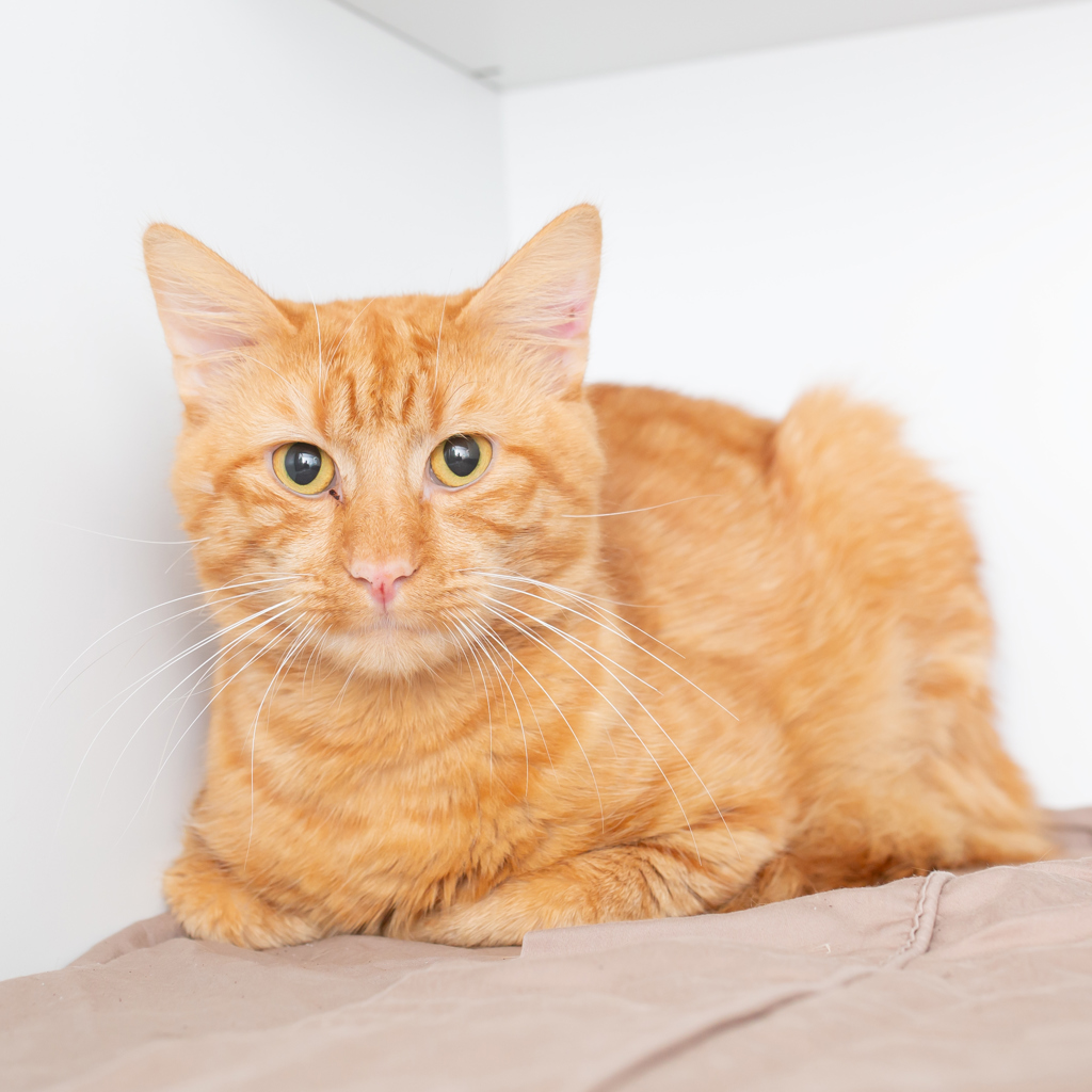 Meet Ziggy Stardust, an energetic ginger cat with a heart full of love and a purr that will brighten your day! Ziggy is not only affectionate but also loves to stay active and frequently gets the zoomies. He'd be thrilled with lots of room to stretch his legs, and an outdoor cat enclosure would be perfect for him to safely enjoy some fresh air. Ziggy adores face scratches and head pats and can't get enough of human interaction. With his soft, orange fur and captivating eyes, he's not just a pet-he's the perfect companion, ready to bring joy and warmth to your home. If you're looking for a lively and loving friend, Ziggy Stardust is waiting to join your family!