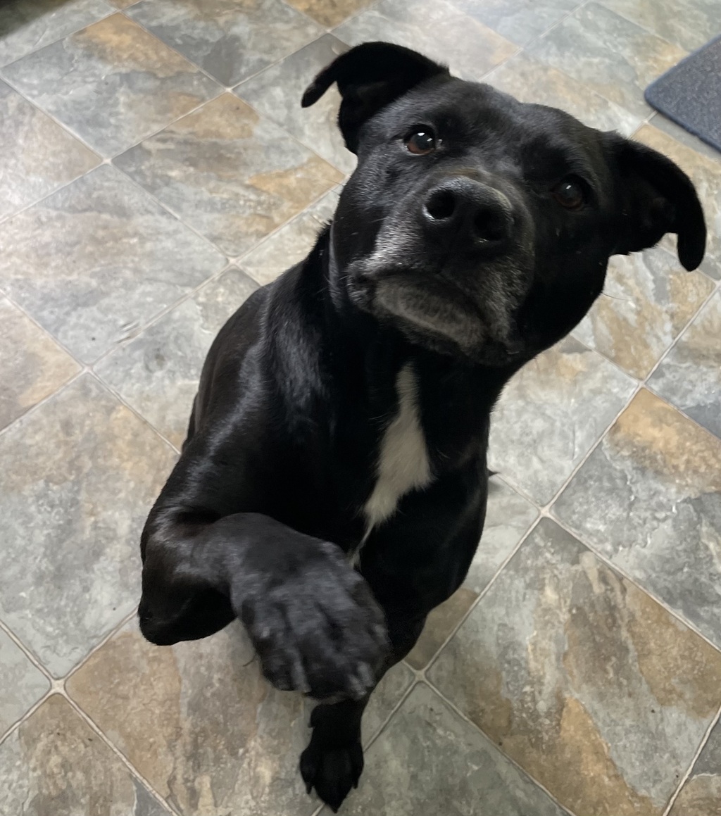 This boy has had a troubled past, having experienced cruelty & neglect & yet, despite this, he loves to be around his favourite people. Staffies are known for being real people dogs & this guy is no exception. His favourite things in life are hanging out with his besties, going for car rides & playing with toys. He's happiest when he's with you but, is also very good at chillaxing in his pen & having some down time.