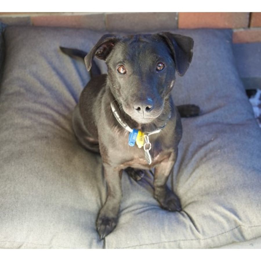 He loves to sleep on his back with his legs in the air but that might just be his way of enticing you for a belly rub. He's finding out that toys are fun and likes to run around with them in his mouth with his foster brother. He's always up for a game of tug or fetch and loves to chase after a toy or ball. He could easily fit into a home with or without another dog and doesn't mind doing his own thing. He's a quiet boy that rarely barks but he does like to suss things out when he hears another dog in the park. His favourite places to be are either at your feet or laying out in the sun with his legs in the air.