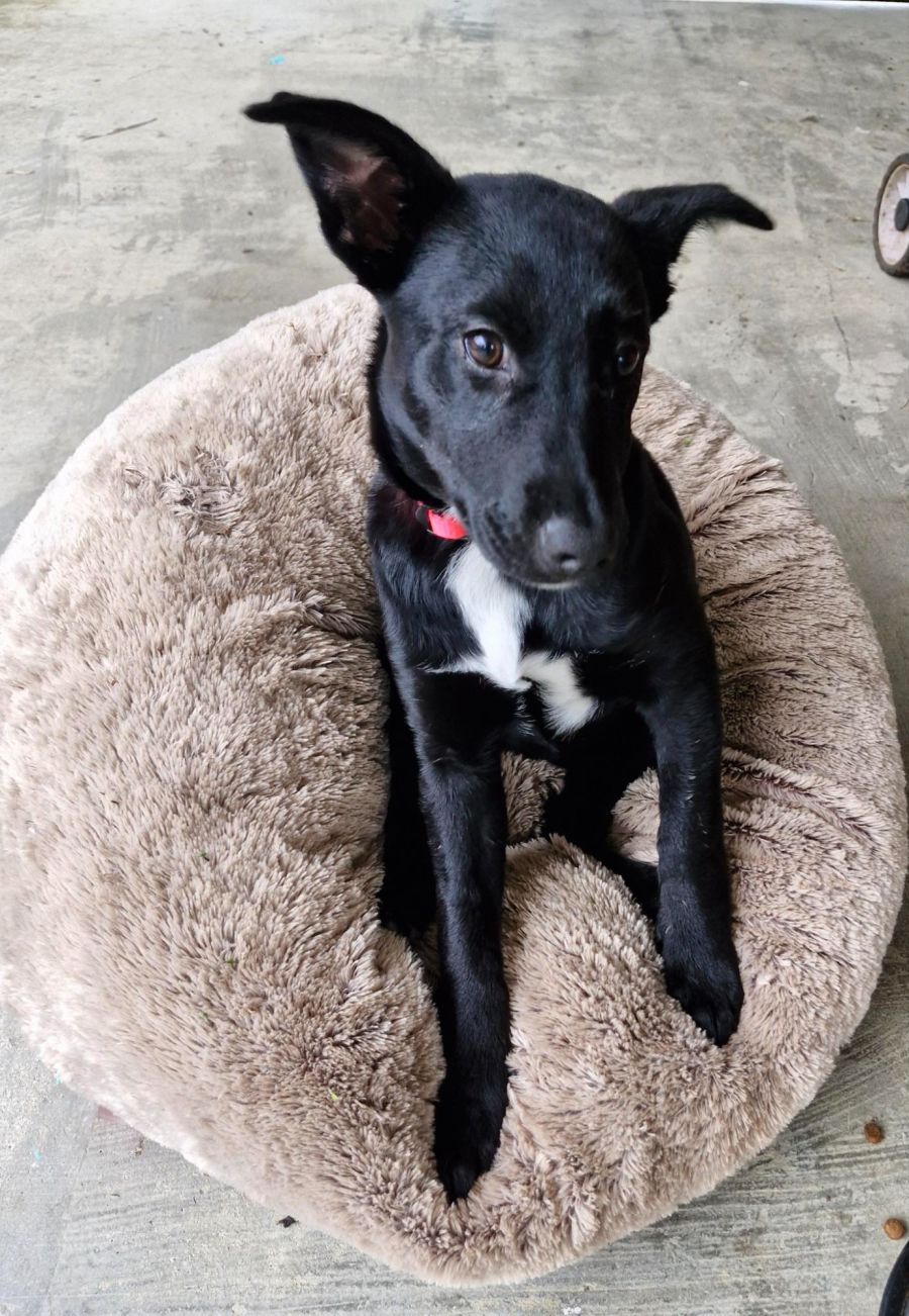 Ideal for a family with children over the age of six, Ebony is a soft, cuddly puppy who loves to be gloriously patted. Though she can be a little timid around loud people. Not bothered by neighbour dogs or even birds flying across the yard, Ebony is a curious observer.