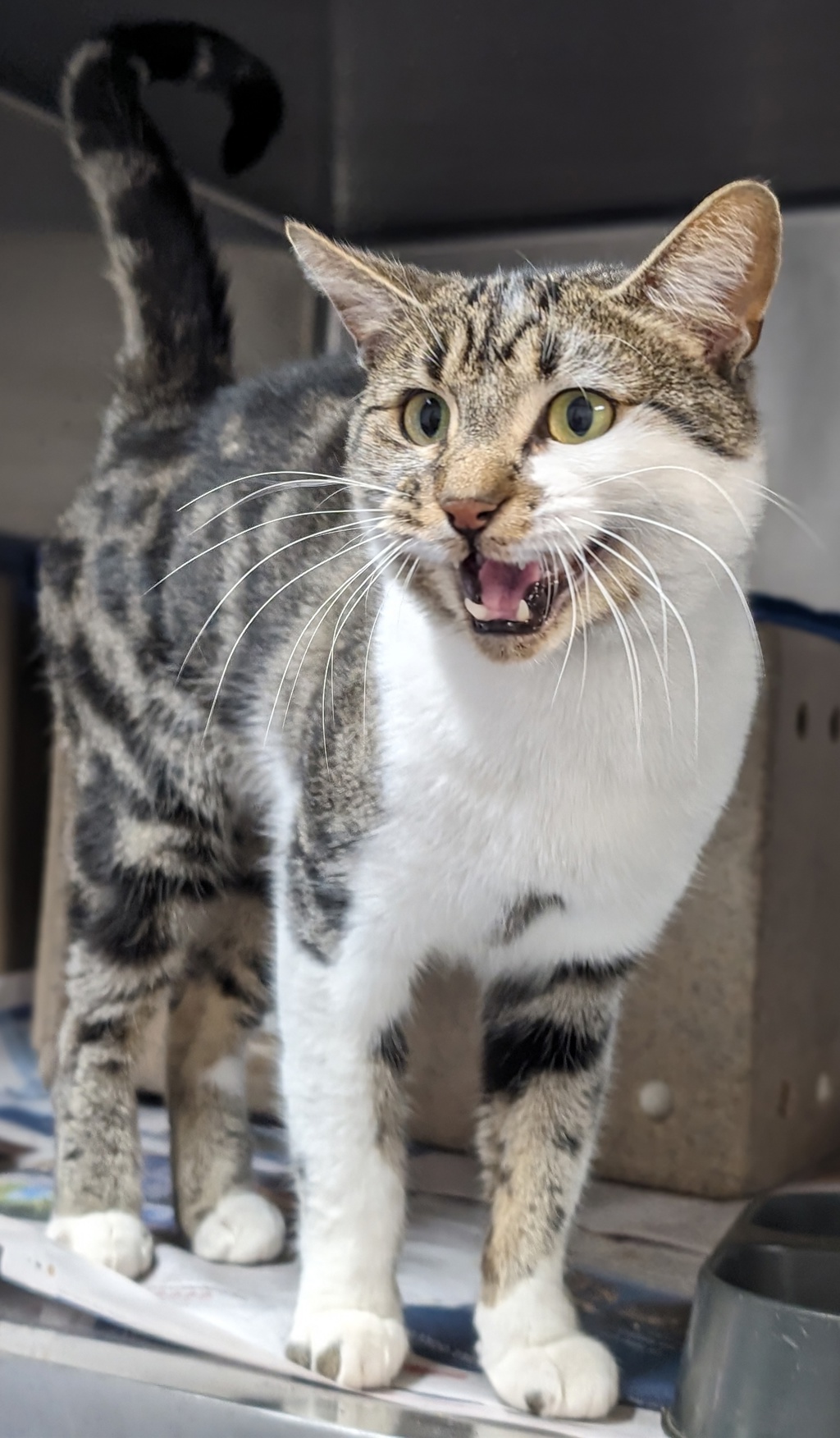 Lamp Post is a charming 1-year-old tabby and white cat who is ready to bring endless joy and companionship to his forever home. With his striking tabby markings and bright white fur, Lamp Post is not just a handsome feline but also a bundle of fun and energy.
