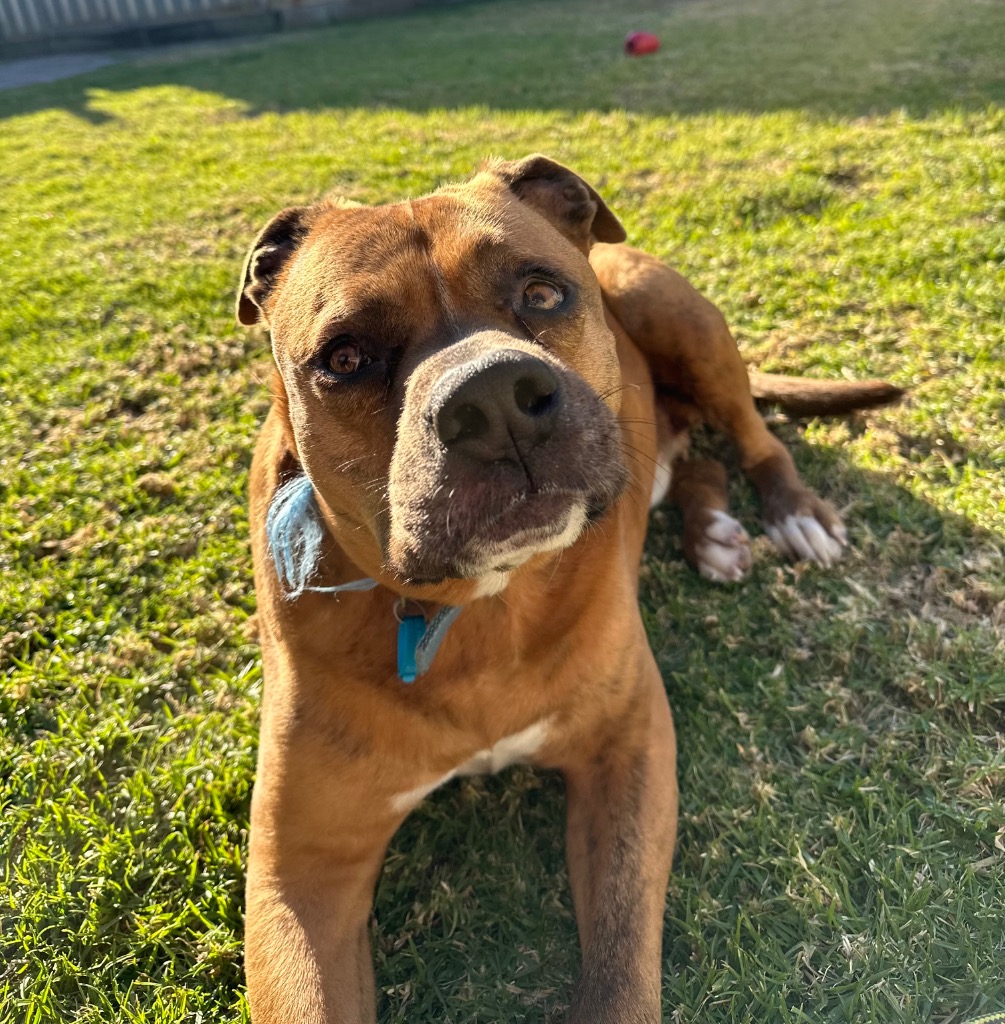 This 5-year-old American Bulldog cross is crate-trained, house-trained and knows all basic obedience commands and thrives with a structured routine.