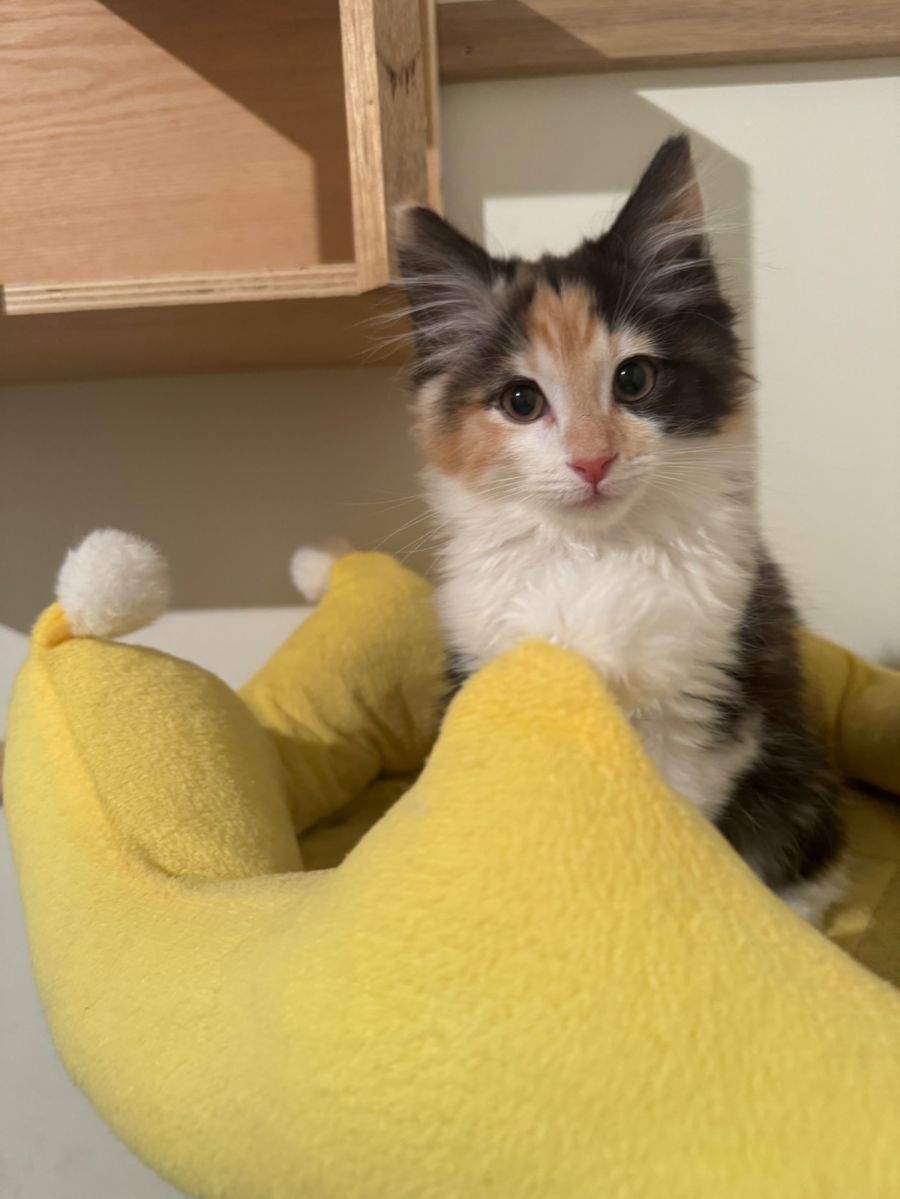 Sweet Nene is looking for her forever home. Initially shy, Nene blossoms with affection once she's settled. She enjoys playing with her kitten friends and seeks out pats and cuddles when playtime is over.