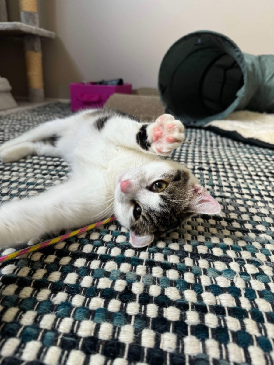 Hattie is one of those extra loving kittens. She will roll onto her side and back, seeking belly rubs, cuddles, and lots of pats. A truly gentle, sweet, and affectionate baby who deserves the best of homes.
