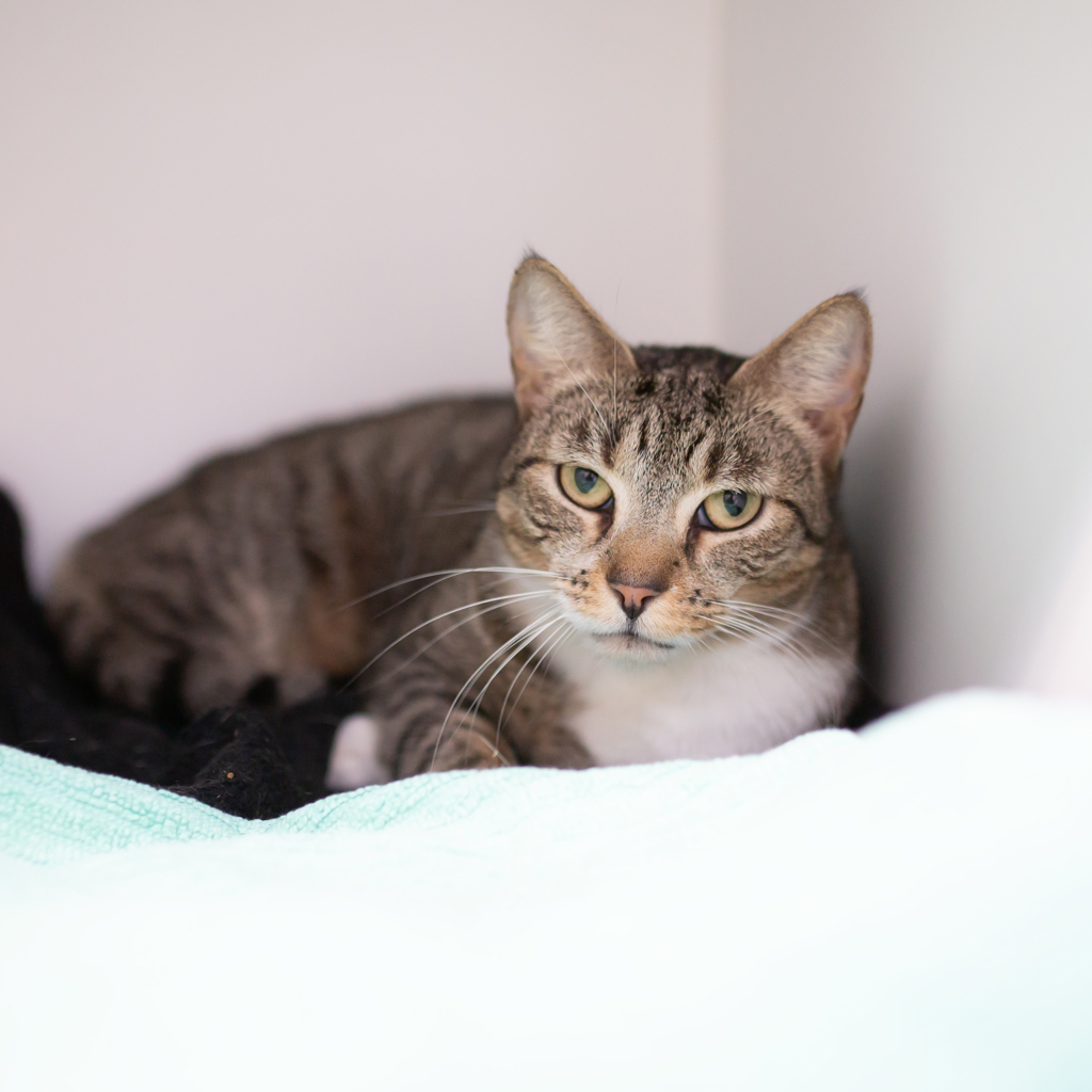 Hi there! I'm Tabitha, a beautiful tabby girl with a heart of gold and a love for snuggles. I'm the smoochiest cat you'll ever meet-I absolutely adore cuddles and pats. I also enjoy having my own special place to hang out and relax. I'm looking for a home filled with love, where I can truly blossom into my full personality and be my true self. If you have lots of love to give and are looking for a sweet, affectionate companion, I'm your girl. Let's make each other's lives brighter and happier!