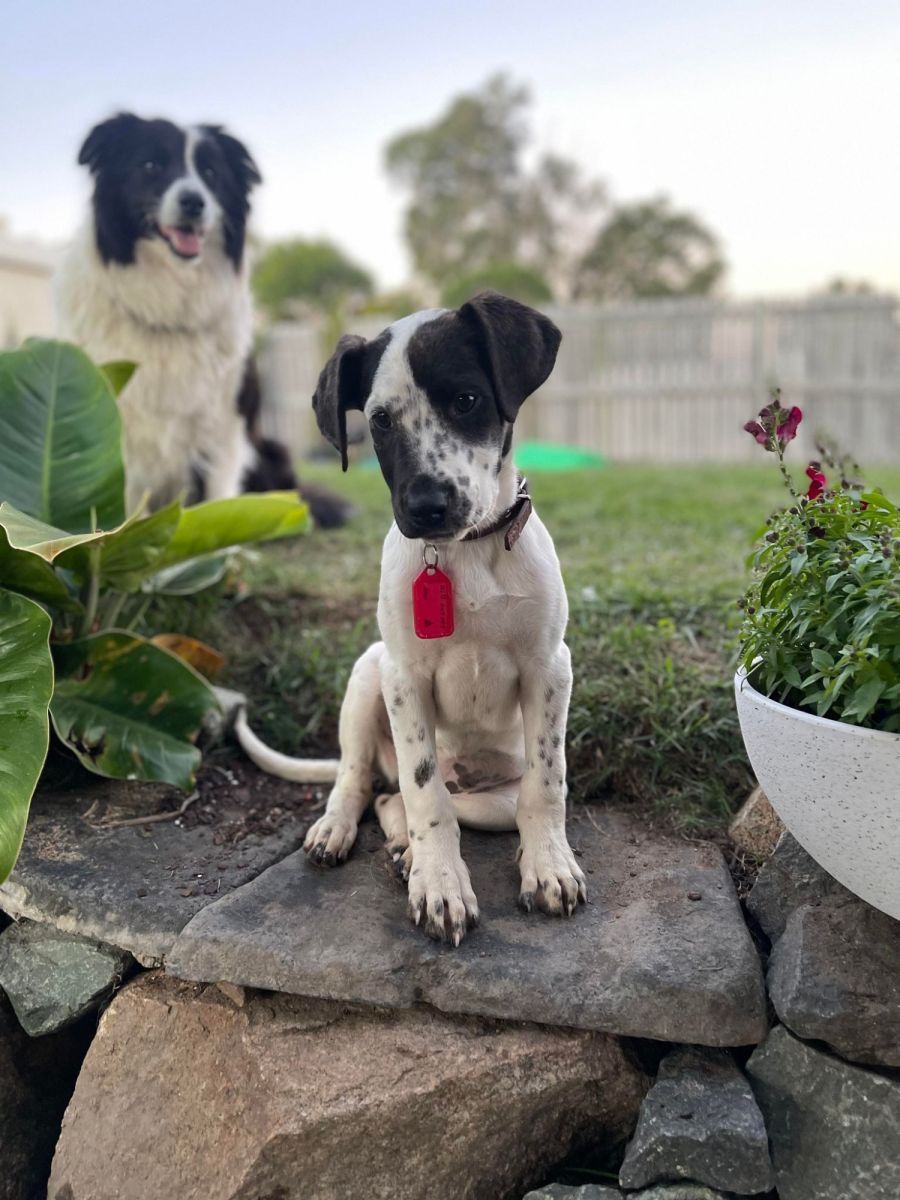 As with all pound pups, it has been hard to say exactly what their breed is – we see cattle dog and maybe some staffy in there too.