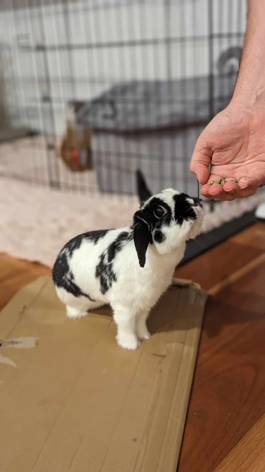 Like most rabbits, Amaya doesn't cope well with wooden floorboards, so she's best suited to a home with suitable flooring for her to free-roam. Even some rugs down for her to zoom on will keep this gal happy.