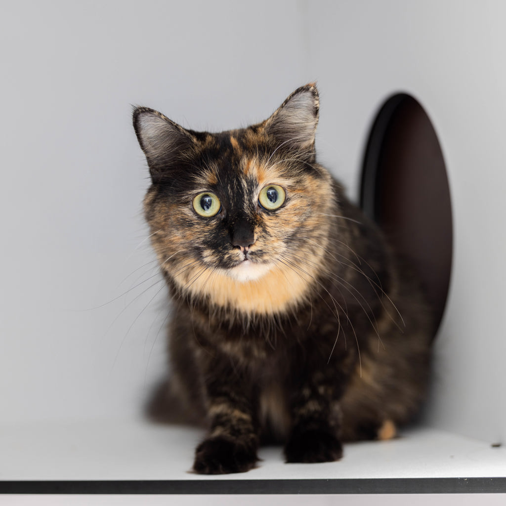 Hello there, I'm Autumn! I'm a sweet and curious feline, always on the hunt for a new adventure. My energy knows no bounds, and I love a good game of chase or a puzzle toy to keep my sharp mind busy. I'm also fiercely loyal, once I've chosen my person, I'll be by their side, offering a comforting purr and a playful paw. I prefer to be only cat so I can get all of your attention. Adopting me means gaining a smart, energetic, and loyal companion who will always be there for you. I can't wait to meet you!