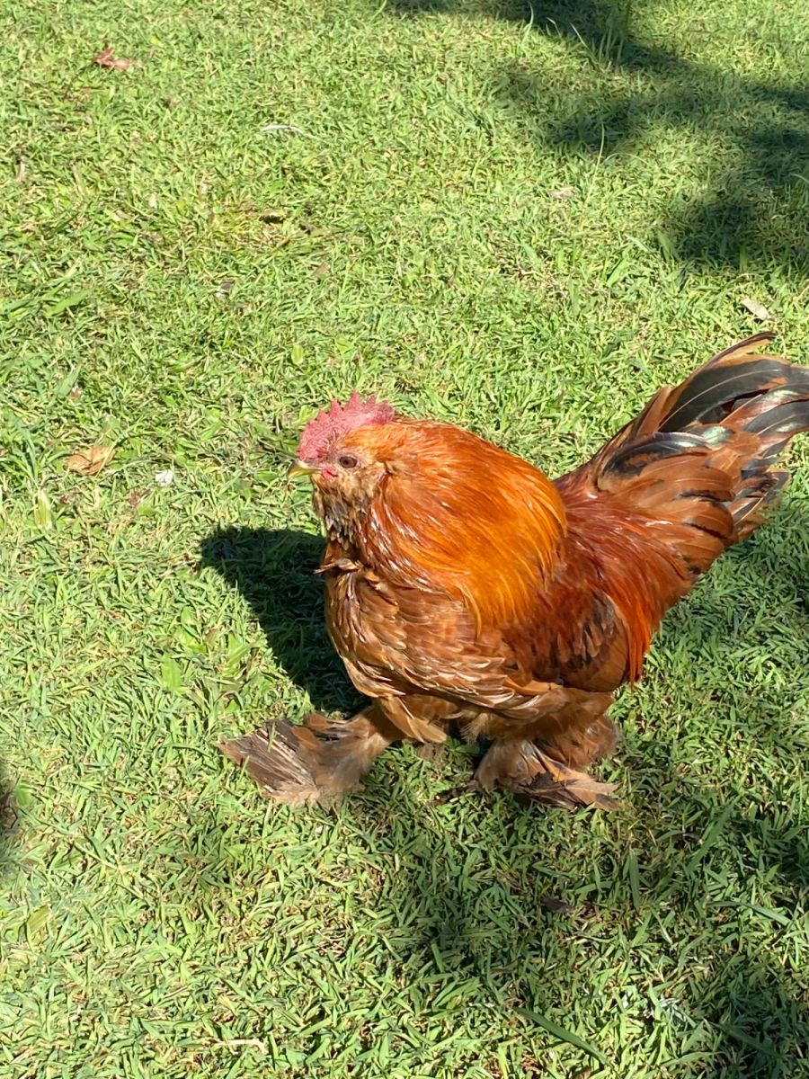 Never a dull moment with Peanut around! He has the most beautiful crow that you'll hear in the early hours of the morning and intermittently throughout the day. It's a soulful sound that adds a delightful touch to your daily life.