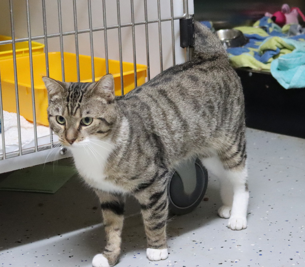 Meet Ralph, a 5-year-old cat who has transformed from a wary newcomer to a charming companion ready to find his forever home. When Ralph first came to the shelter, he was unsure of people but has since learned that treats and gentle pats are the way to his heart. He's still discovering the world and can be nervous at times, so he's looking for a patient family who can continue to teach him and help him build confidence.