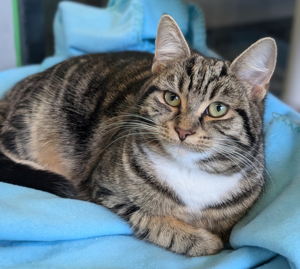 Meet Truffle, a delightful 9-month-old kitten who is sure to capture your heart with her charming personality and adorable looks. Truffle is the epitome of confidence, strutting around with a playful swagger that endears her to everyone she meets. She loves being around people and is always ready to share her affection, making her a perfect companion for anyone seeking a loving pet.