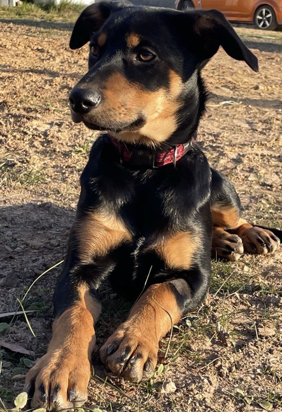 At 15 weeks old, this little girl is already showing strong Kelpie instincts. She was born in care on February 26, 2024, to hard-working parents Star and her dad. Both are working dogs, and it's clear that Bindi has inherited their strong will and natural instincts!