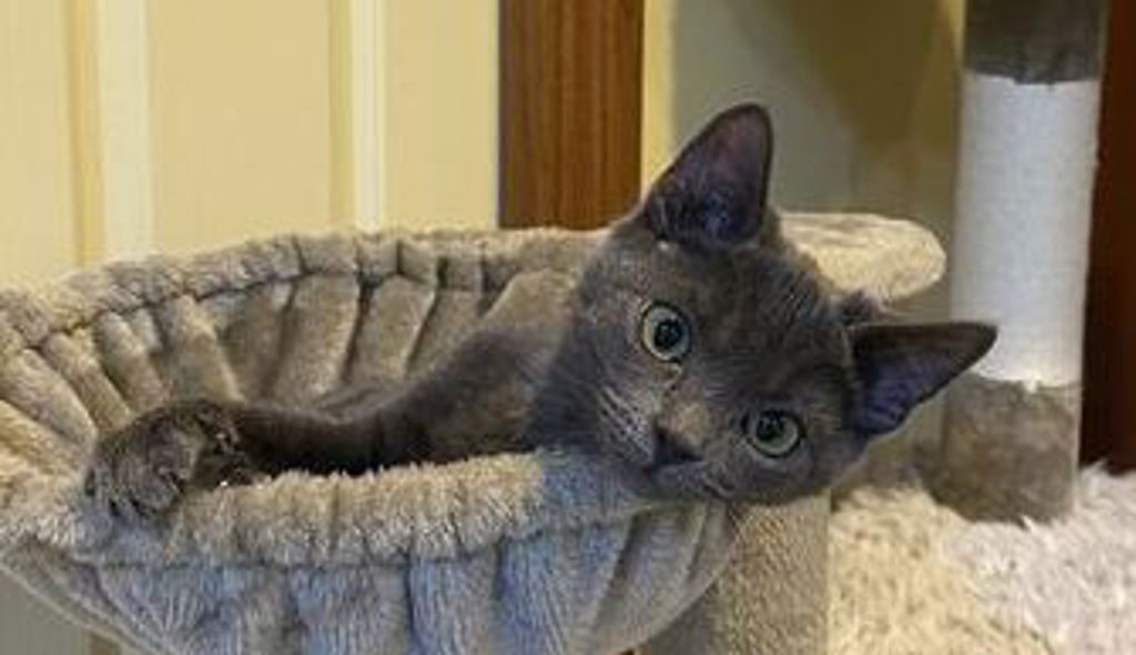 Introducing Asher, the striking 13-week-old grey kitten with a bold personality and a heart full of love. This playful and gentle little boy adores pats and head scratches and loves nothing more than sitting on your lap, basking in your affection.