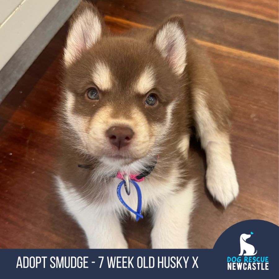 Hi, my name is Smudge I am a truly special 7 week old female Husky Cross. My mummy is a beautiful 14kg Husky Kelpie Cross so I am hoping to be a similar size. I was the smallest born in my litter but have caught up beauifully to my siblings and my foster mummy says I am a super fast leaner. Everyone loves my special colouring and my expressive face.