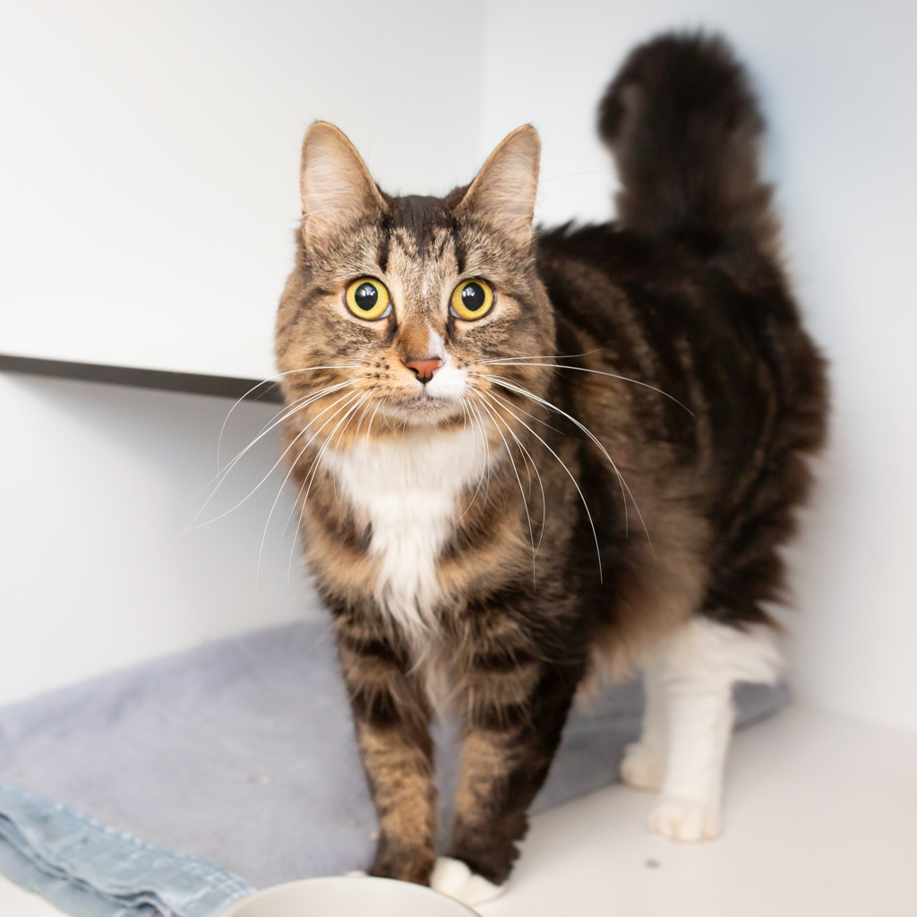 Meet pixie, the purr-fect bundle of love you've been searching for! This sweet kitty is as magical as her name, with a heart full of affection and playful spirit that will brighten your days. Pixie loves cuddles, lap time, and gentle purrs. She's a social butterfly who enjoys the company of humans. Whether she is chasing her favourite toy or snuggling up for a cosy nap, Pixie will fill your home with warmth, joy and unconditional love.