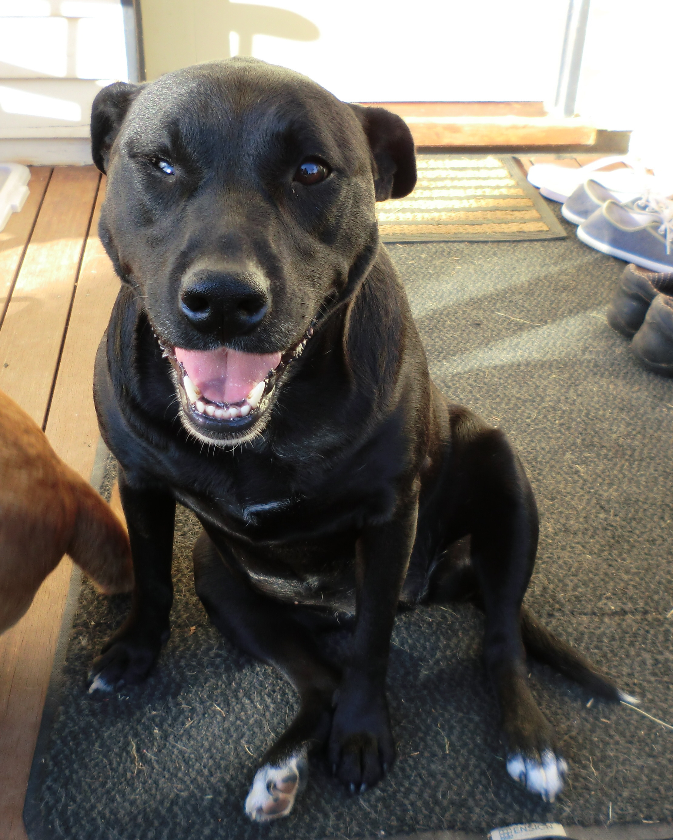rescued nearly 4½ years ago as young pups in wa, tilly and brian are brother and sister and although similar in size they really don’t look alike at all. And as to what breed’s they’re made up of it has stumped many different vets over the years who finally settled on the safe “cross breeds” for their description. Tilly kind of looks like a small labrador with maybe a little staffy thrown in whereas brian looks like he may have some shepherd or mastiff in him with his darker markings around his snout, but whatever they are it is a perfectly balanced blend as they are devine!!! tilly weighed in at a healthy 26. 4kgs at her last vet visit. Tilly has 3 white paws, a little on her chest and then is topped off by a spot at the tip of her tail. She is a little less outgoing than brian, since a bullet wound, which occurred when she was shot at by some idiot while living in tasmania a couple of years ago, has left her blind in her right eye with slight hearing loss as well – she’s lucky to be alive! she is still very affectionate just a little timid when it comes to loud noises coming from her right side. Tilly is described by her owner as enjoying human company, likes walks and outings, is willing to learn, likes one-on-one training, is self contained yet can be strong willed and is best with her brother brian who acts as her eyes and ears. She is a sweet, smoochy girl :)