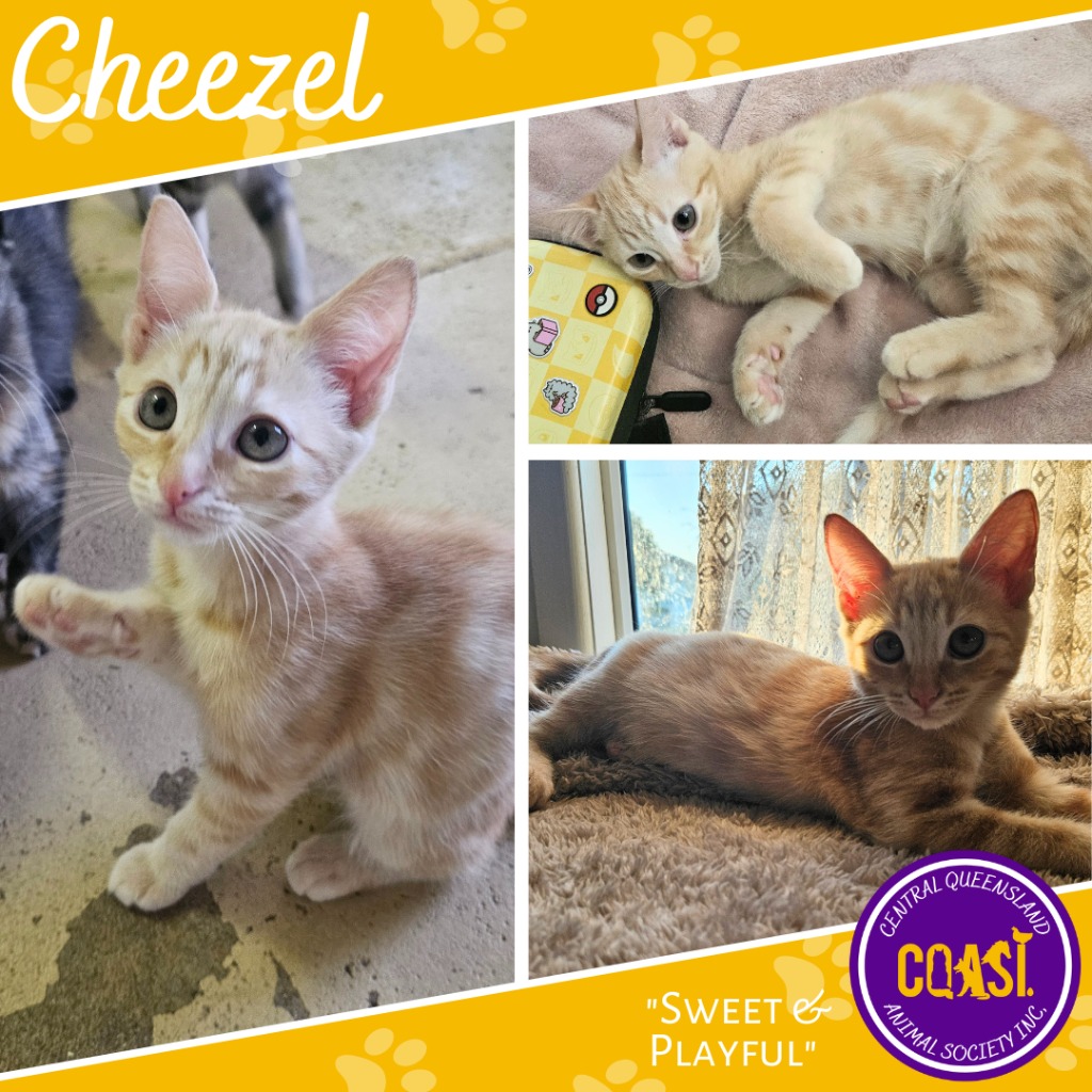 Hello peeps! I'm a sweet & timid little ginger tabby named Cheezel.