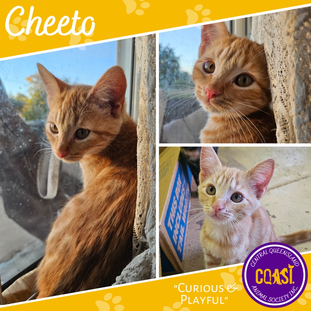 Hello I'm Cheeto...a sweet young ginger tabby with a cute pink nose!