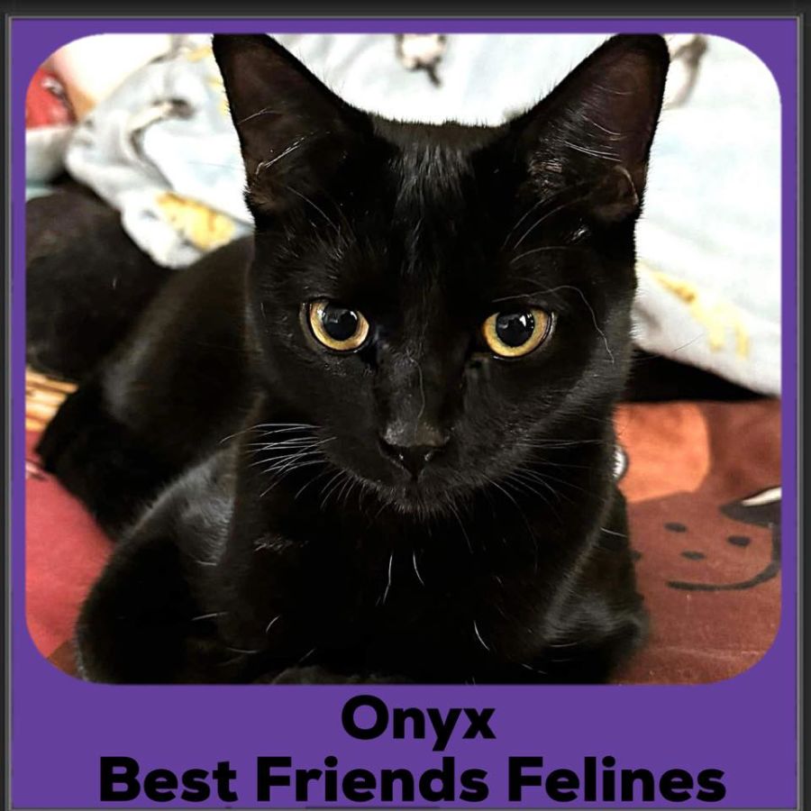 Onyx is a sweetie, so snuggly and soft. Food, play and being patted are particular loves for Onyx. So playful and full of kitten energy but loves to curl up with her carer too.