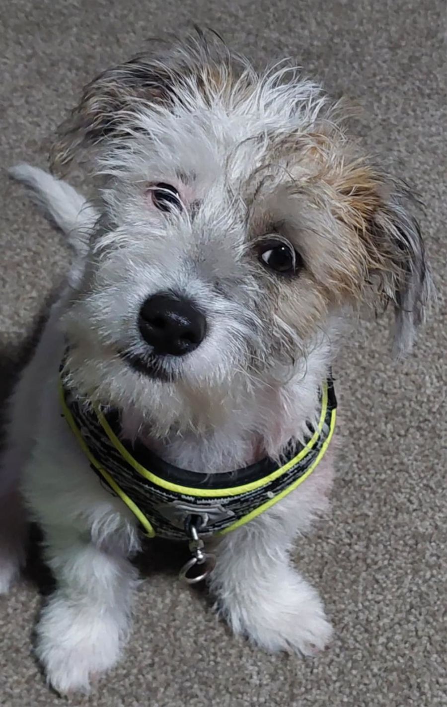 Eddy is a 14 week old male Jack Russell x Maltese Terrier pup that is a "flea in a bottle" type of guy. True to his breed mix Eddy has two speeds.....running and playing and then sleeping 😴. He knows how to use that cute look to con treats and attention out of you.