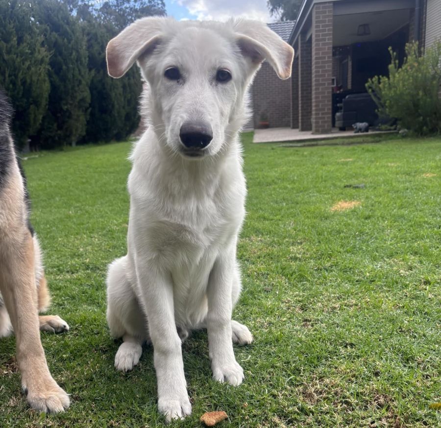 Dexter is 5.5 months old and is more than ready to find his forever home! Dexter is a white German Shepherd (dad was white, mum was a very light black and tan). After being rescued with his siblings, Dexter has been living it up in foster care for the last month discovering how great life can be!