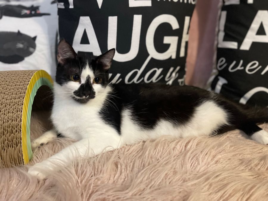 She’s playful, energetic, elegant and independent. She’s very maternal towards the other cats and will groom them & snuggle up with them for a nap. She loves getting her chin scratched and will keep your seat warm if you get up.