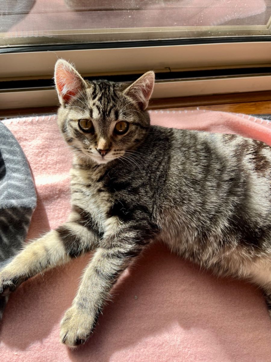 Pattie is a small bundle of joy ready to brighten up your world. This sweet, adventurous female kitten has a heart as big as her personality. Unaware of her petite build, she trots around every corner of her temporary home with the spirit of a lioness.