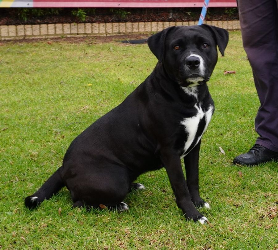Carly is a gentle 2-year-old Staffadore (Staffy Lab mix) with a heart as big as her playful spirit. Carly’s sleek coat and expressive eyes reflect her lineage, while her stocky robust build hint at her Staffy heritage. She strikes a perfect balance between the two, bringing together the best of both breeds.