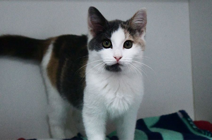 Just like all kittens, she would love a cat tree to climb on and scratch, and an assortment of toys to play with. She should be fed kitten food multiple times a day to ensure that she grow up big and strong.