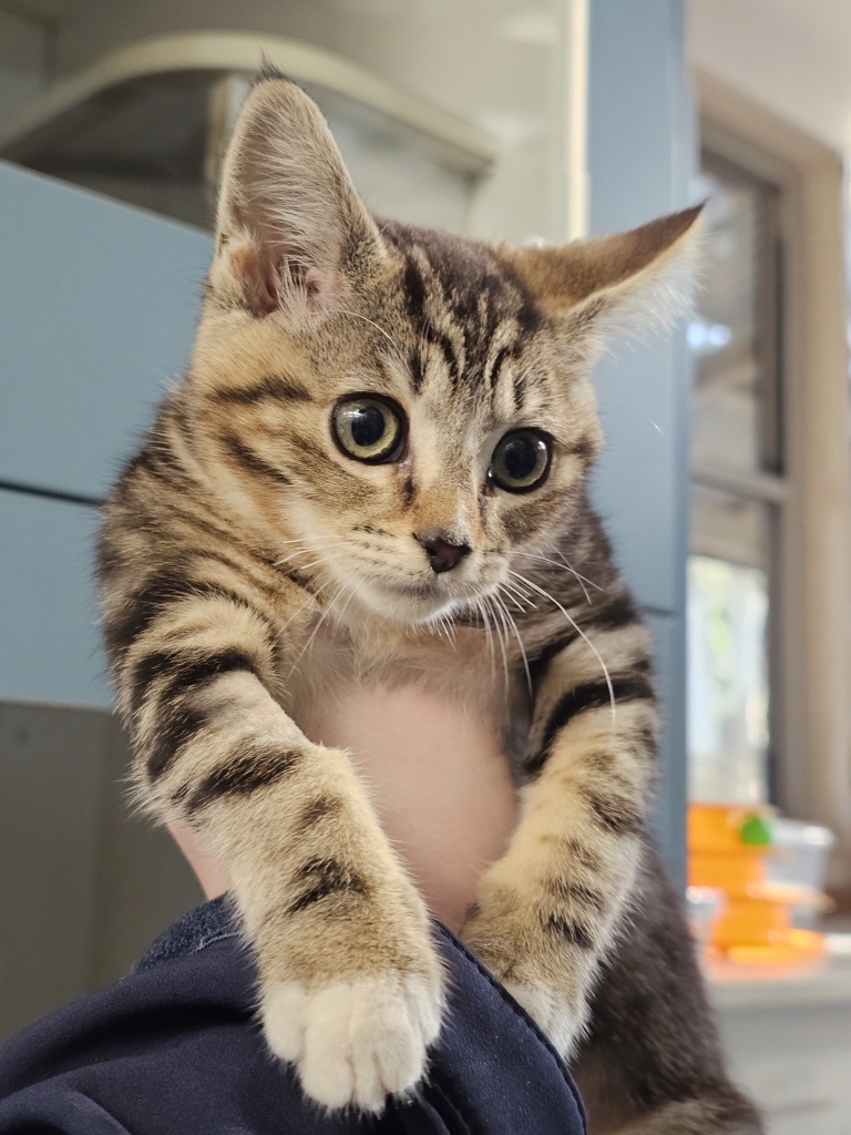 Hey there, I'm Arrow. I'm a friendly and affectionate kitten who would suit most homes! My playful paws are always ready to pounce on anything that moves. I love playing with wand toys and mysterious shadows on the wall! When I'm finished playing, I love nothing more than finding a warm lap to curl up in.
