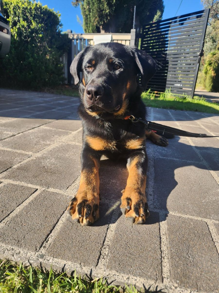 Murphy is a 6 month old Rottweiler x German Shepherd. Murphy was an outside only dog before he came into care, so we have been doing training with him indoors and he is doing great 🙌