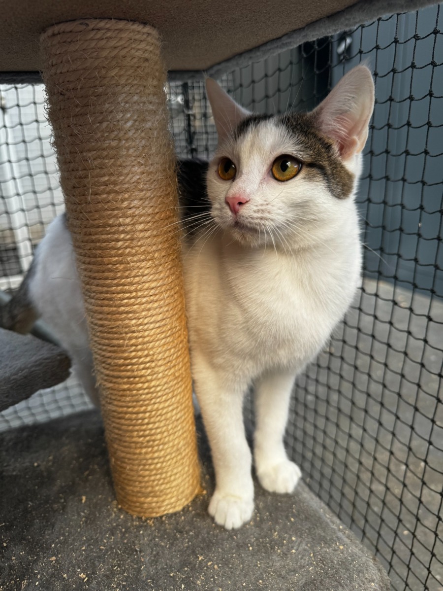Iris is a quieter kitten but still has a lovey dovey personality. Once she gets to know you she loves scratches on her head and behind her ears while sitting in your lap.
