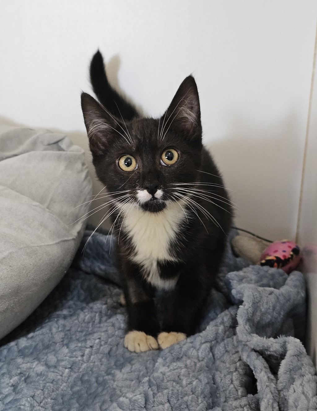 Hey there, I'm Obsidian. I'm a friendly and affectionate kitten who would suit most homes! My playful paws are always ready to pounce on anything that moves. I love playing with wand toys and mysterious shadows on the wall! When I'm finished playing, I love nothing more than finding a warm lap to curl up in.
