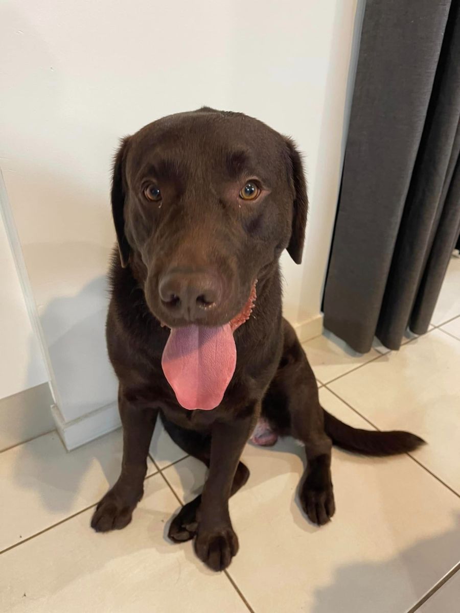 Kobi is an energetic chocolate coloured big boofa. With his glossy coat and friendly eyes, he wins hearts wherever he goes.
