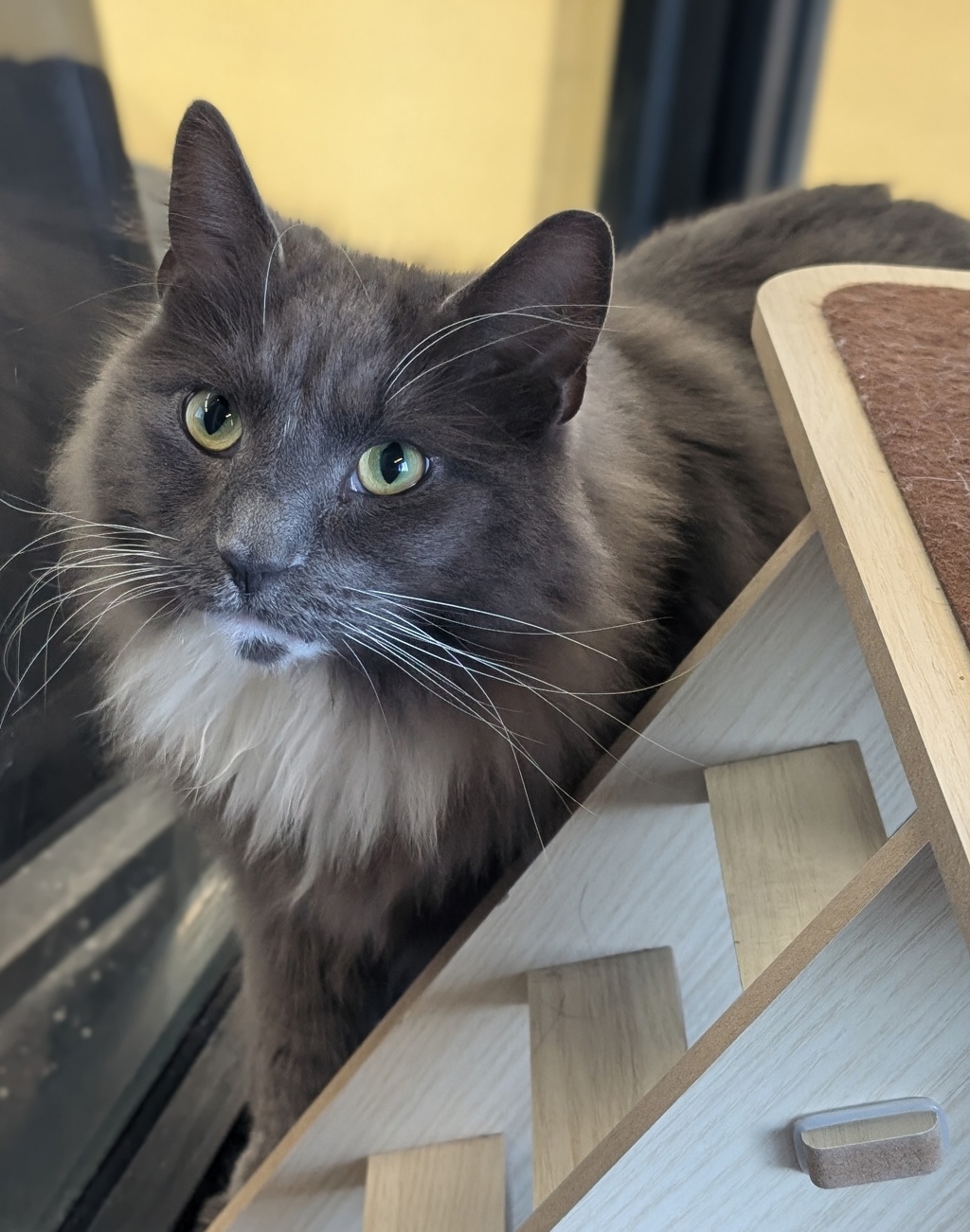 Hey there, I'm Fat Cat! I'm a stunning, big boy, and I'm just 3 years old. As a Domestic Long Hair (DLH) kitty, I've got some seriously beautiful and fluffy fur that you'll love to pet. My humans often tell me I'm a sight to behold!