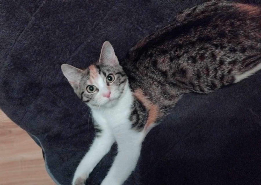 Torti a sweet 4 mth old kitten, been in foster care and with other cats and a dog .