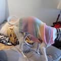 At home Honey loves to snooze close to you, often roaching with pure delight of how good her life is now in your loving and comfy home. She has begun to roach ( sleeping upside down with all limbs stretched out in a display of joy) Honey will regularly demand pats and cuddles, especially when she hears you stir in the morning, wanting to be the first to say good morning and start another day with you.