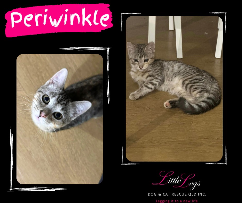 Periwinkle started life on a quiet farm with limited human contact. Initially shy, she warms up quickly with the help of tasty treats and gentle interactions. Once she feels comfortable, her curious and playful nature shines through. She loves to explore new environments, play with feather toys, and bat at string. Despite her independent streak, Periwinkle also enjoys attention and will seek out affection from her human companions. Periwinkle has lived with dogs before and doesn't mind their presence, though she prefers to retreat to higher spots where she feels safe and can observe her surroundings. She would thrive in a home with patient caregivers who understand her need for a gradual adjustment period. If you’re ready to welcome a curious, playful, and affectionate kitten into your home, Periwinkle could be the perfect addition to your family. Please contact us to arrange a meeting and see if Periwinkle is the right fit for you.