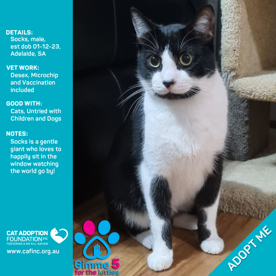 Donate to Socks Only $39 Limited Time! at Cat Adoption Foundation Incorporated via Shout