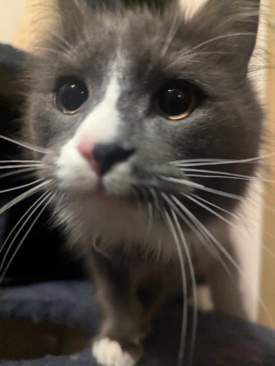 This happy cat is one of a kind. His eyes sparkle with joy, and his extra fluffy coat is perfect for petting and cuddling. Jasper is very affectionate and he's always up for a good cuddle session. He's the ultimate cuddle muffin! He enjoys head scratches so much that he'll nudge your hands for more. But don't worry, he knows when to give you space too.