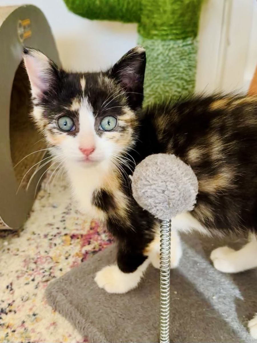 Meet Sandy, your next feline best friend! This adorable young female calico kitten is overflowing with personality and charm. Sandy is a social butterfly who adores humans and has a special fondness for dogs — she'll cuddle up with them as if they were her own.